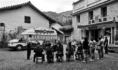 6月9日,景宁县法院在东坑镇深垟村就一起追索劳动报酬纠纷案件进行巡回审判,庭审过程同步录用录像,双方当事人通过移动微法院签署调解协议,全程无纸化。通讯员 林海龙