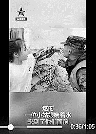 6月14日,贵州遵义,特大暴雨过后,武警官兵赶赴正安县碧峰镇,转移被困群众,全力抢通清淤。看到武警战士满手污泥,一位小姑娘主动给他喂水喝,她还着急地说:“你不用弯腰,我再端高点。”