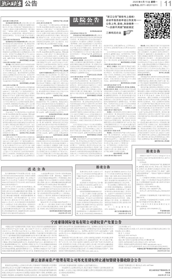 宁波豪锋国际贸易有限公司债权资产处置公告