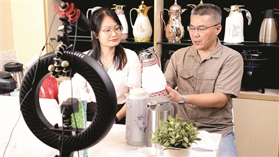 6月12日,广州轻出集团股份有限公司员工在排练直播。