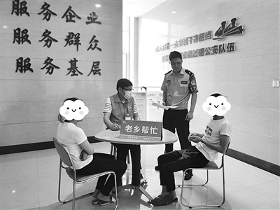 民警傅申宇将夫妻二人约到店口派出所的“老乡帮忙”调解点,同时叫来了“新店口人”先锋队中的老党员潘伟年,希望能劝和夫妻俩。