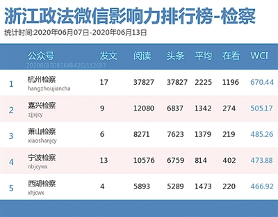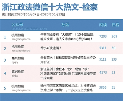 本期检察院榜上,“杭州检察”成为双料冠军。热文榜上,其发布的《干事创业要有“大格局”!15个基层院响应发声,速去文末点(tou)赞(piao)!》,获得最高阅读量和在看数。