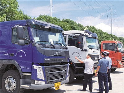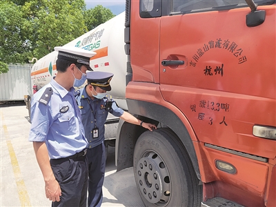 没过多久,一辆装有氢气的危险品运输车被拦下,施福寿对车辆合格证有效期、押运人员有无资质等进行了检查,并调取记录查看这辆车是否有违法未处理的行为。“另外,从外观上,我们重点检查车辆是否安装警示标志、车身反光标识是否规范有效、是否配备应急处理器材和防护用品等。”施福寿说。