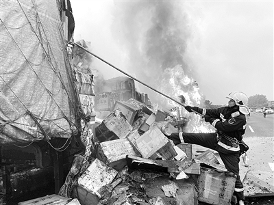 经过2个多小时的紧张救援,成功将现场火势扑灭,将货物损失降到了最低。事故原因正在调查中。