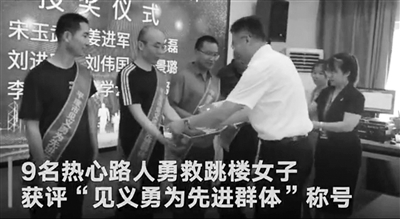 9人救跳楼女子获评见义勇为先进群体 救人者宋玉武被砸中仍处昏迷