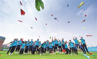 6月22日,河北省邯郸市邯山区第一中学的高三学生将写有自己梦想的纸飞机抛向空中。