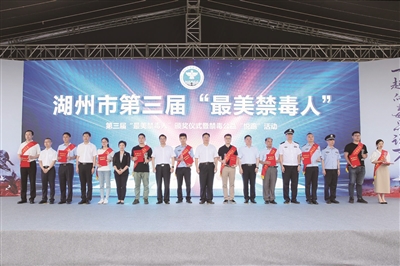 6月24日,湖州市举办第三届“最美禁毒人”颁奖仪式暨禁毒公益“悦跑”活动,迎接第33个国际禁毒日的到来。活动中,10名“最美禁毒人”受到表彰,近300名民(辅)警、社区干部、禁毒社工、禁毒志愿者代表在倡议书上签名。