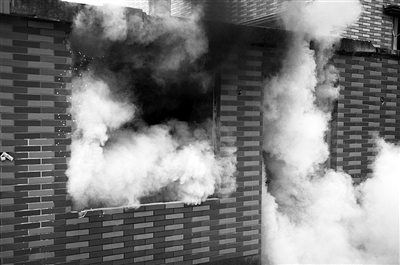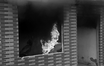 30秒钟后,现场火势逐渐增大,房间上方被黑烟笼罩,室温达到了41.6℃。1分钟后,电动车上的明火开始蔓延,滚滚黑烟从窗口涌出,室温也达到了48.5℃。