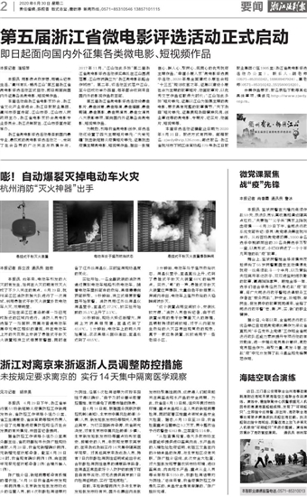 浙江法制报 要闻 00002 嘭!自动爆裂灭掉电动车火灾 2020-06-30 2 2020年06月30日 星期二