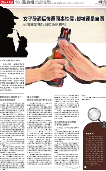司法鉴定中,依据标准、规范进行鉴定是十分重要的,但标准或规范毕竟难以覆盖所有实际问题。在标准难以涉及的鉴定领域,鉴定人有责任利用自然科学的原理和规律,来解决侦查和诉讼中需要解决的科学技术问题。只有这样,司法鉴定的作用和重要性才能得以充分体现,才能不断推动与促进司法鉴定事业的进步和发展,本案在这方面作了有效的尝试。在此,也提醒广大女性同胞,外出应适度饮酒,加强自我保护。