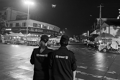 无人机巡逻夜市摊