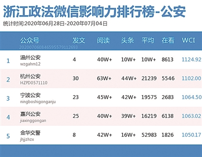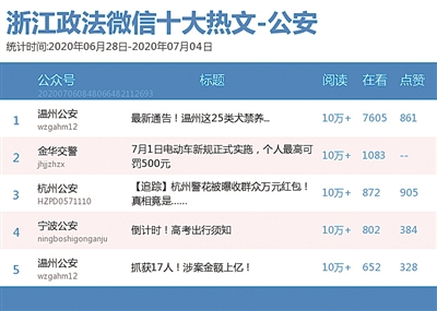 本期公安榜,“温州公安”再次获得双料冠军。该公众号2篇文章入围热文榜前五名,其中《最新通告!温州这25类犬禁养》一文收获“10万+”阅读数以及“7605”在看数,荣登榜首。为规范养狗、文明养狗,温州市公安局公布关于限养区禁养烈性犬、大型犬的通告,并在微信推文中开展相关有奖知识竞答活动,吸引了不少网友关注。
