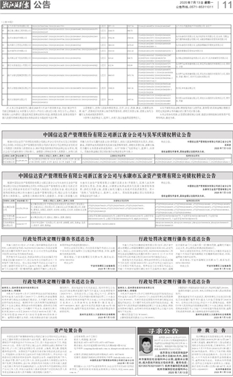 中国信达资产管理股份有限公司浙江省分公司与吴军庆债权转让公告