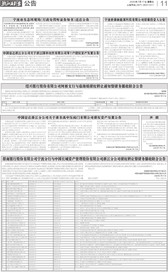 中国信达浙江分公司关于浙江国申纺织有限公司等7户债权资产处置公告