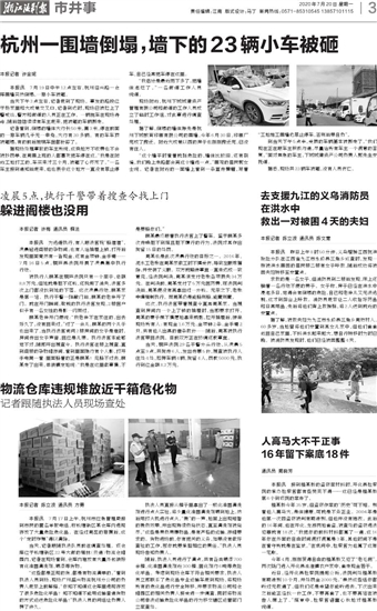 杭州一围墙倒塌,墙下的23辆小车被砸
