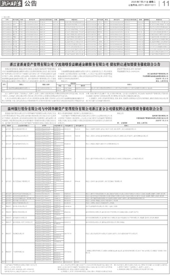 温州银行股份有限公司与中国华融资产管理股份有限公司浙江省分公司债权转让通知暨债务催收联合公告