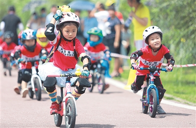 暑期来临,各地少年儿童积极参与各种形式的文化娱乐、强身健体活动,乐享多彩假期。图为7月22日贵州省铜仁市玉屏侗族自治县举办的儿童滑步车骑行比赛。