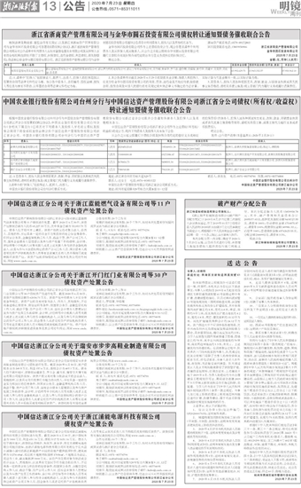 中国信达浙江分公司关于浙江蓝能燃气设备有限公司等11户债权资产处置公告