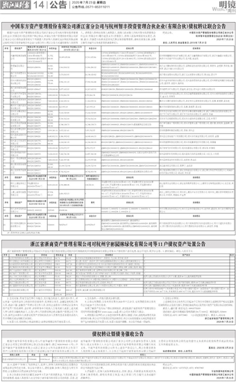 中国东方资产管理股份有限公司浙江省分公司与杭州智丰投资管理合伙企业(有限合伙)债权转让联合公告