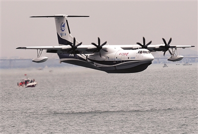 7月26日,水陆两栖飞机AG600在海上飞行。