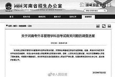 针对网上反映河南专升本管理学科目考试有关问题,河南联合调查组立即进行全面调查。经查,某培训机构在专升本考试封闭命题前,非法从参与命题人员赵某某处获取部分信息。目前,公安机关已立案侦查,依法对犯罪嫌疑人采取了强制措施。