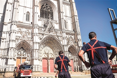 这座位于南特市中心老城区的教堂18日起火,无人伤亡。执法人员发现3处疑似纵火点,启动刑事调查。