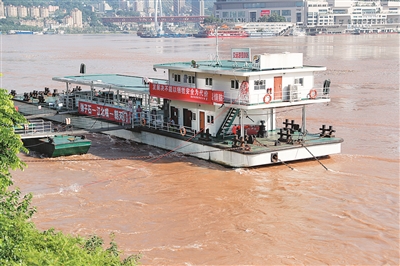 7月27日,长江重庆朝天门段水位上涨,弹子石轮渡码头已关闭。