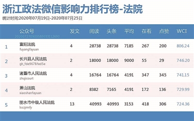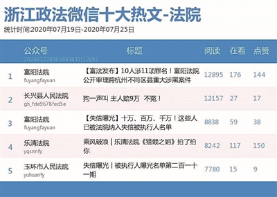本期法院榜,“富阳法院”表现亮眼,夺得双料冠军。其《【富阳发布】10人涉11项罪名!富阳法院公开审理跨杭州不同区县重大涉黑案件》讲诉该院通过远程视频方式,审理了一起因聚众赌博而衍生的系列涉黑、涉恶违法事件,获广泛关注。