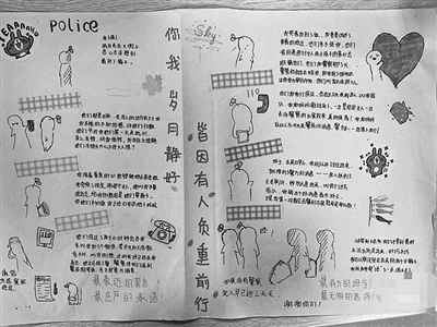 本报讯 7月29日,杭州市文新派出所向媒体展示了一幅少女漫画和一张感谢信。漫画和感谢信出自一名14岁女孩小云(化名)之手,她声情并茂地画出、写出自己不久前经历的一件事,稚嫩的笔触下尽是对警察叔叔的崇拜。