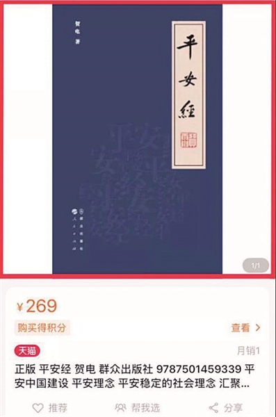 7月29日,记者搜索多个电商平台,已经搜不到《平安经》一书。根据此前媒体报道,此书在电商平台上的售价为269元。