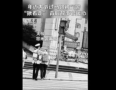 年迈大爷过马路被交警揪着走 背后故事意外暖心