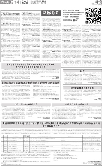交通银行股份有限公司宁波分行资产转让通知暨与受让方中国信达资产管理股份有限公司浙江省分公司 债权催收联合公告