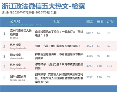 本期检察院榜,“杭州检察”荣登榜首,“嘉兴市南湖区人民检察院”紧随其后,成为榜单新秀。一直默默无闻的“嘉兴市南湖区人民检察院”这次是如何脱颖而出的呢?从其热文《南湖检察院拍了拍你:一起来打击“骚扰电话”!》可以看出,接地气的内容是“增粉”的“法宝”。