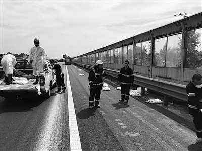 开到半路,有强烈刺激和腐蚀性的货物掉落