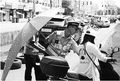 近日,苍南县交警开展“守护平安”攻坚月电动车专项整治行动,将每周四定为全县统一行动日,联合市监、乡镇等部门,重点整治电动车非法安装遮阳伞,驾驶员不佩戴安全头盔、违法载人等违法行为。 通讯员 林花花
