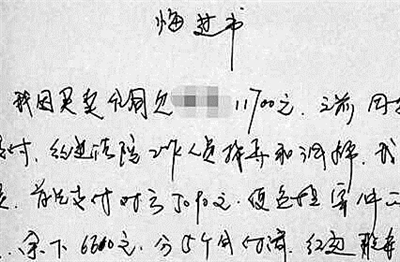 | 被执行人写下的悔过书 |