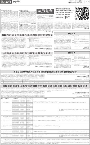 中国信达浙江分公司关于浙江天宏科技有限公司债权资产处置公告