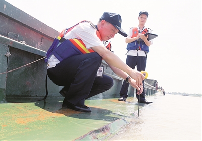 看到执法人员上船,浙安吉货0827的船老大连忙解释,“我知道超了,但前面马上就到了。”现场测量显示,货船左船舷吃水面的距离为负2厘米,右船舷吃水面的距离为负4厘米。证据摆在眼前,执法人员现场就开具了执法文书,要求船方在规定时间内到大队接受调查处理。