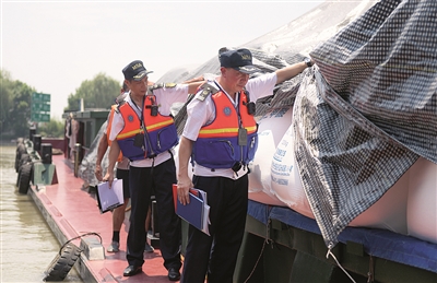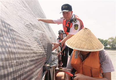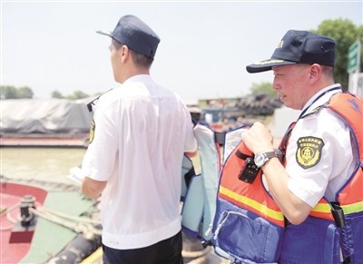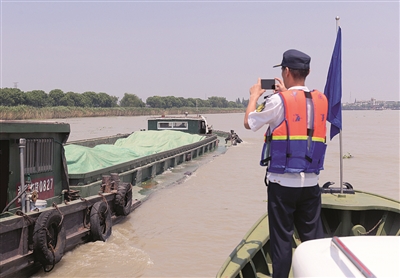 8月11日上午,记者跟随湖州市交通运输综合行政执法队南浔大队菱湖水上中队的执法人员,乘巡逻艇沿着杭湖锡线航道向德清方向巡查,在巡逻艇上体验了一把“蒸桑拿”的感觉,真正体会到了执法人员的艰辛。