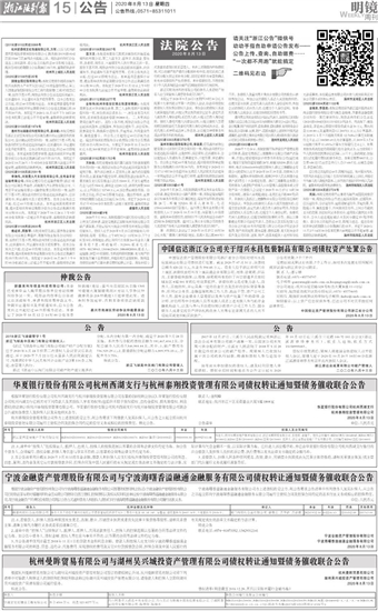 华夏银行股份有限公司杭州西湖支行与杭州泰翔投资管理有限公司债权转让通知暨债务催收联合公告