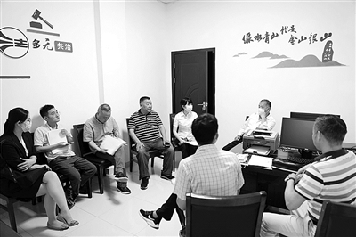 | 湖州市环境治理(安吉)司法协同中心正在化解矛盾纠纷 |