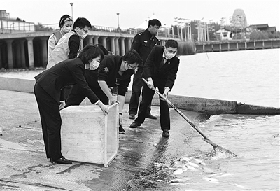 | 2020年4月21日上午,南太湖新区法院联合有关部门在南太湖水域共同开展增殖放流公益活动 |