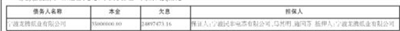 标的债权清单 基准日: 2020年3月15日 单位:人民币元 注:1、清单中“担保人”包括保证人、抵押人,担保人的担保范围以签署的合同等法律文件约定为准。如公告中债务人、债权金额、担保人等信息与事实不符的,以签署的合同等法律文件约定为准。 2、本公告清单分别列示截至2020年3月15日的贷款本金、欠息余额,系公司内部数据,借款人和担保人应支付给陈世干的利息、罚息、违约金及其它应付款按借款合同、担保合同及中国人民银行的有关规定或生效法律文书确定的方法计算。 3、若借款人、担保人因各种原因更名、改制、歇业、吊销营业执照或丧失民事主体资格的,请相关承债主体及/或主管部门代为履行义务或履行清算责任。 特此公告。 联系电话:13705848018、0571-87837983 陈世干 中国华融资产管理股份有限公司浙江省分公司 2020年8月19日 |