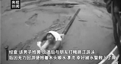 近日,重庆沙坪坝区,一名男子饮酒后与朋友打赌,跳入嘉陵江游泳。但因无力回游,该男子随后抱着木头顺水漂流了10余公里,所幸最终被民警救起。扩散提醒:生命无价,切勿儿戏!