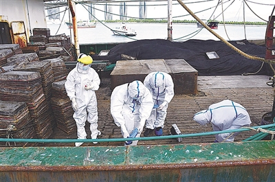 | 对涉案渔船进行现场勘验(三亚海警局供图) |