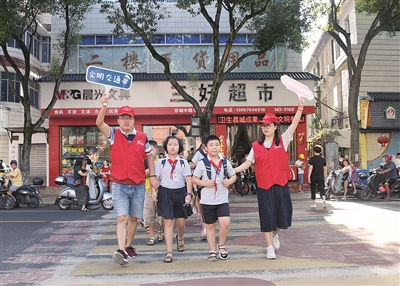 从2010年起,由校党员志愿者和一至三年级学生家长组成的文明劝导志愿服务从未间断。他们身穿红马甲,每天上学、放学高峰期开展文明劝导志愿服务,守护学生安全,成为校门口一道亮丽的风景线。王华斌 摄