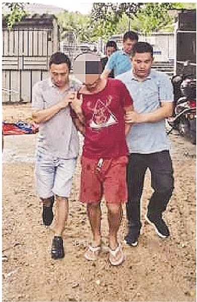 | “漂白”后的刘某(中)落网 |