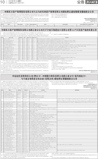 中国东方资产管理股份有限公司与义乌市双利资产管理有限公司债权转让通知暨债务催收联合公告