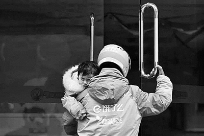抱着女儿送外卖的小哥有过无奈也遇见了温暖