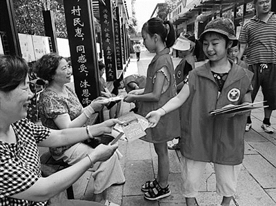 禁毒社工用浅显易懂的语言,向小朋友们科普了禁毒知识。此后,小朋友们身着红色志愿者马甲,分成两个小分队,在街道禁毒社工的带领下,向沿街商家、公交车站候车乘客以及路上行人,发放禁毒宣传手册和宣传扇,提醒大家提高禁毒意识。